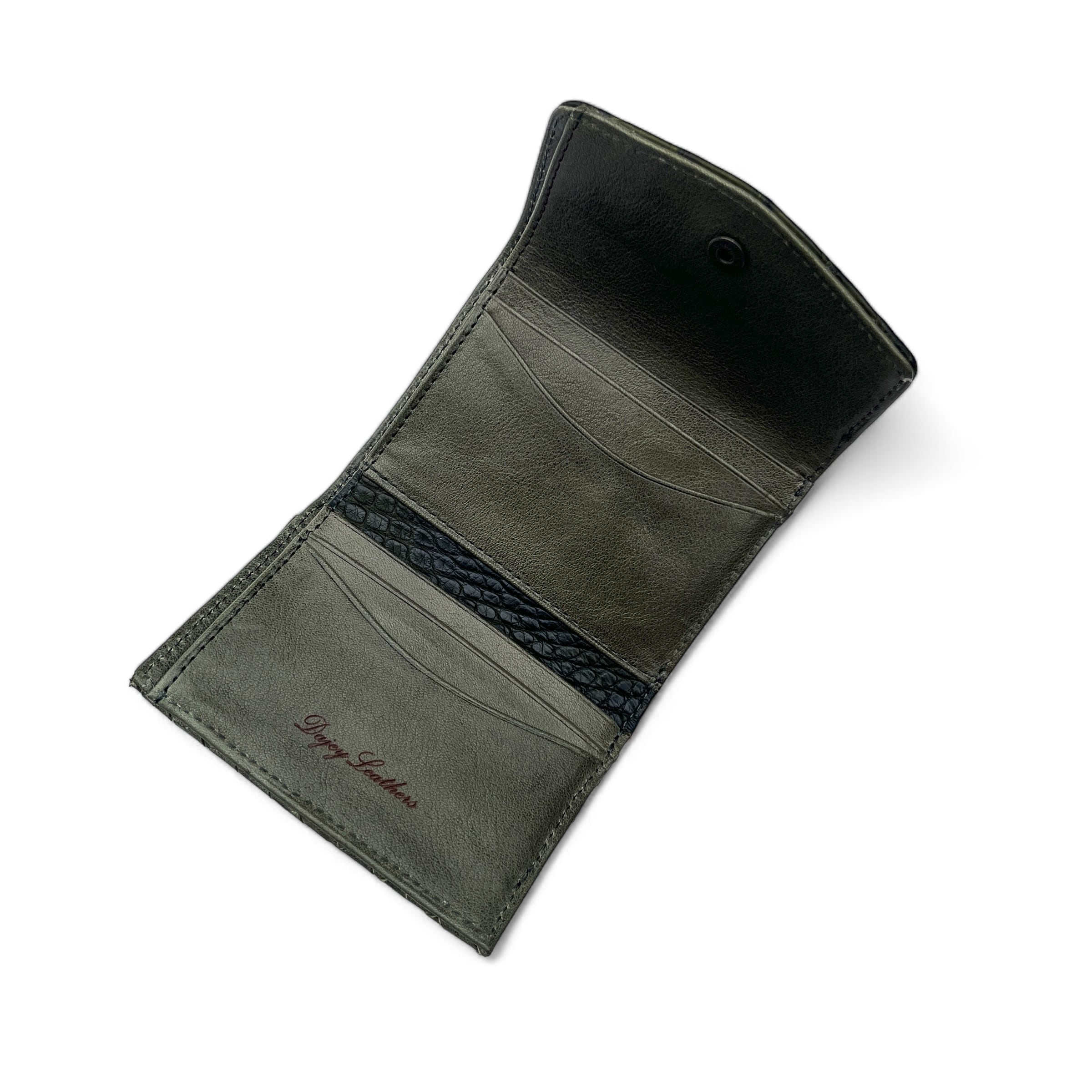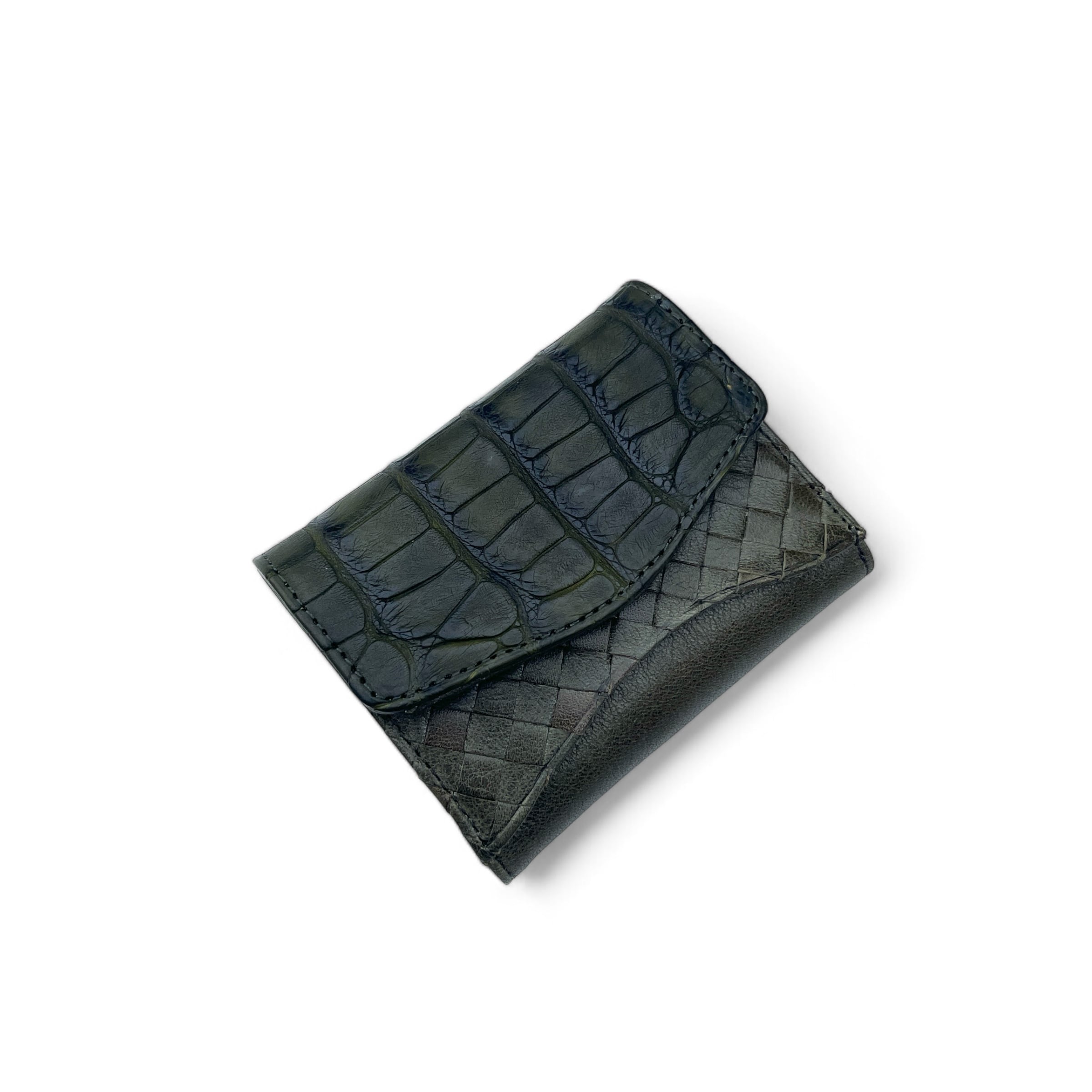 カスタムオーダー"小さな三つ折り財布 マイクロウォレット 本ワニ革×バローロ革(牛) <Green>
