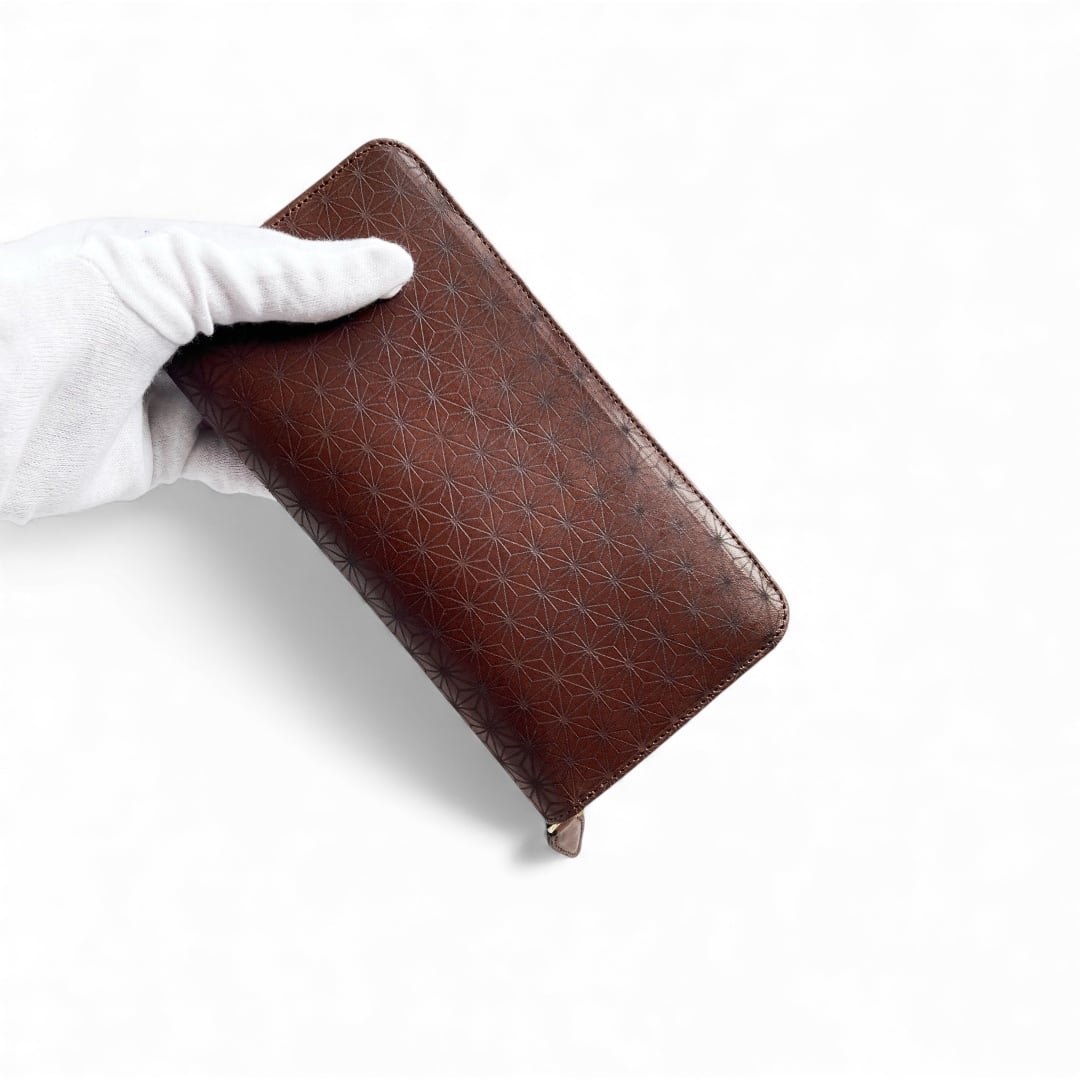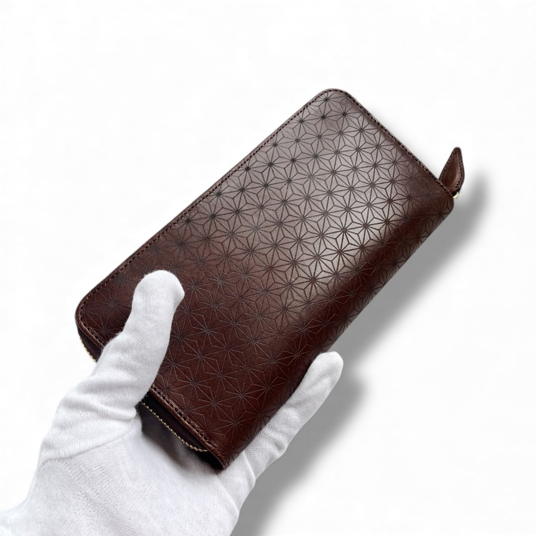 番外編Basic ラウンドファスナーロングウォレット ブッテーロ麻の葉紋様× ブライドル レザー