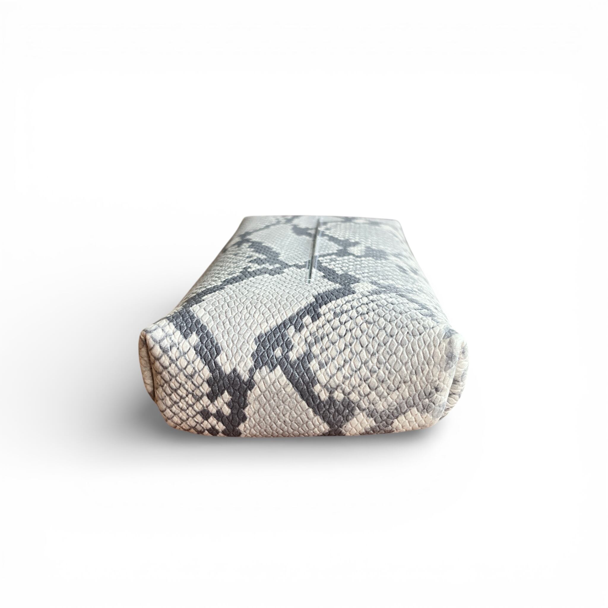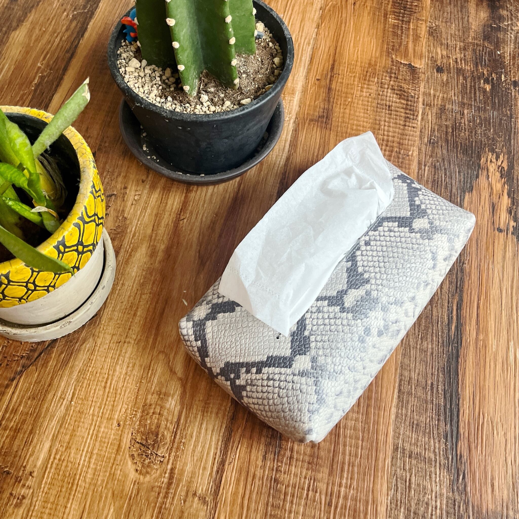 上質な牛革に蛇柄の型押しを施した、ソフトパックティッシュ専用ケース。