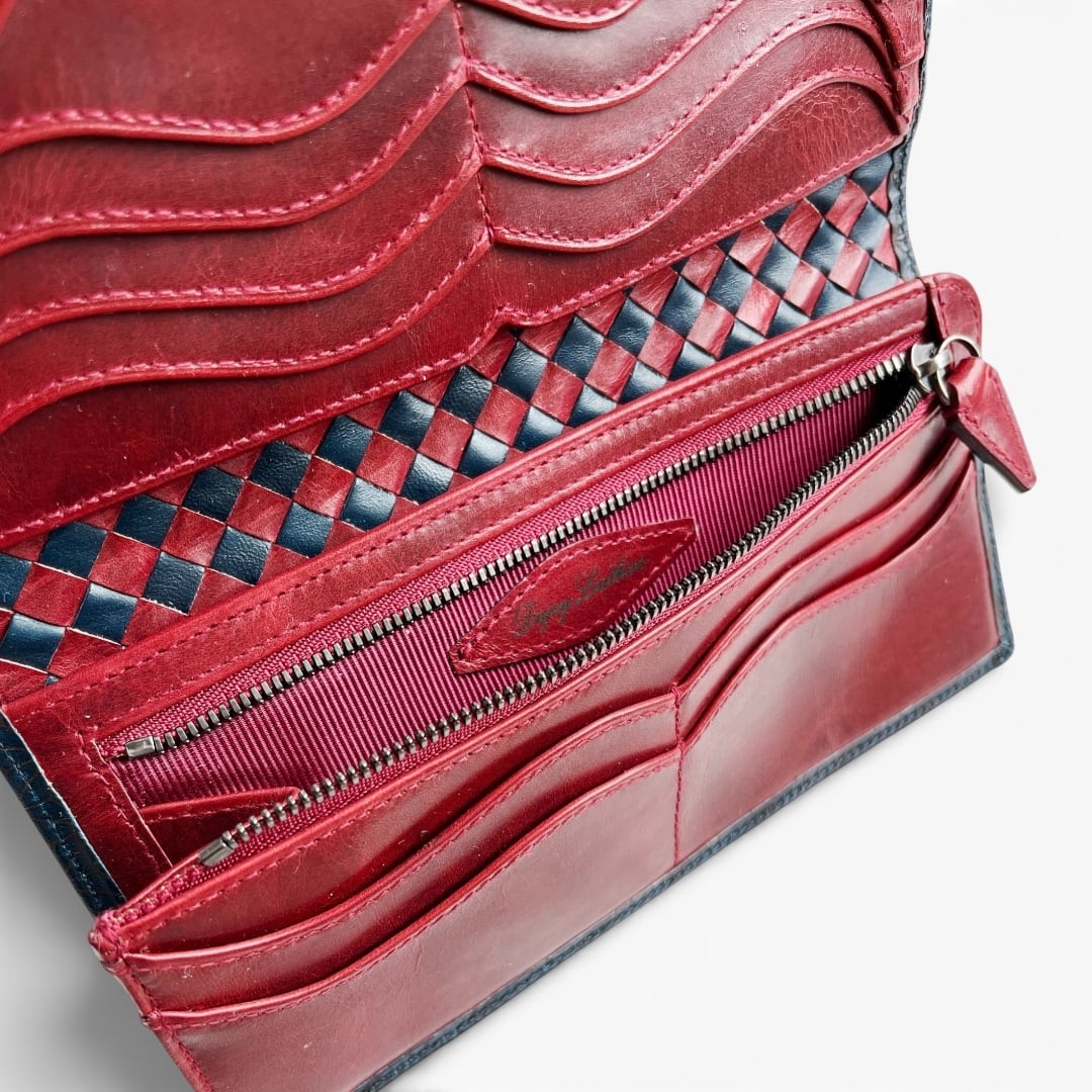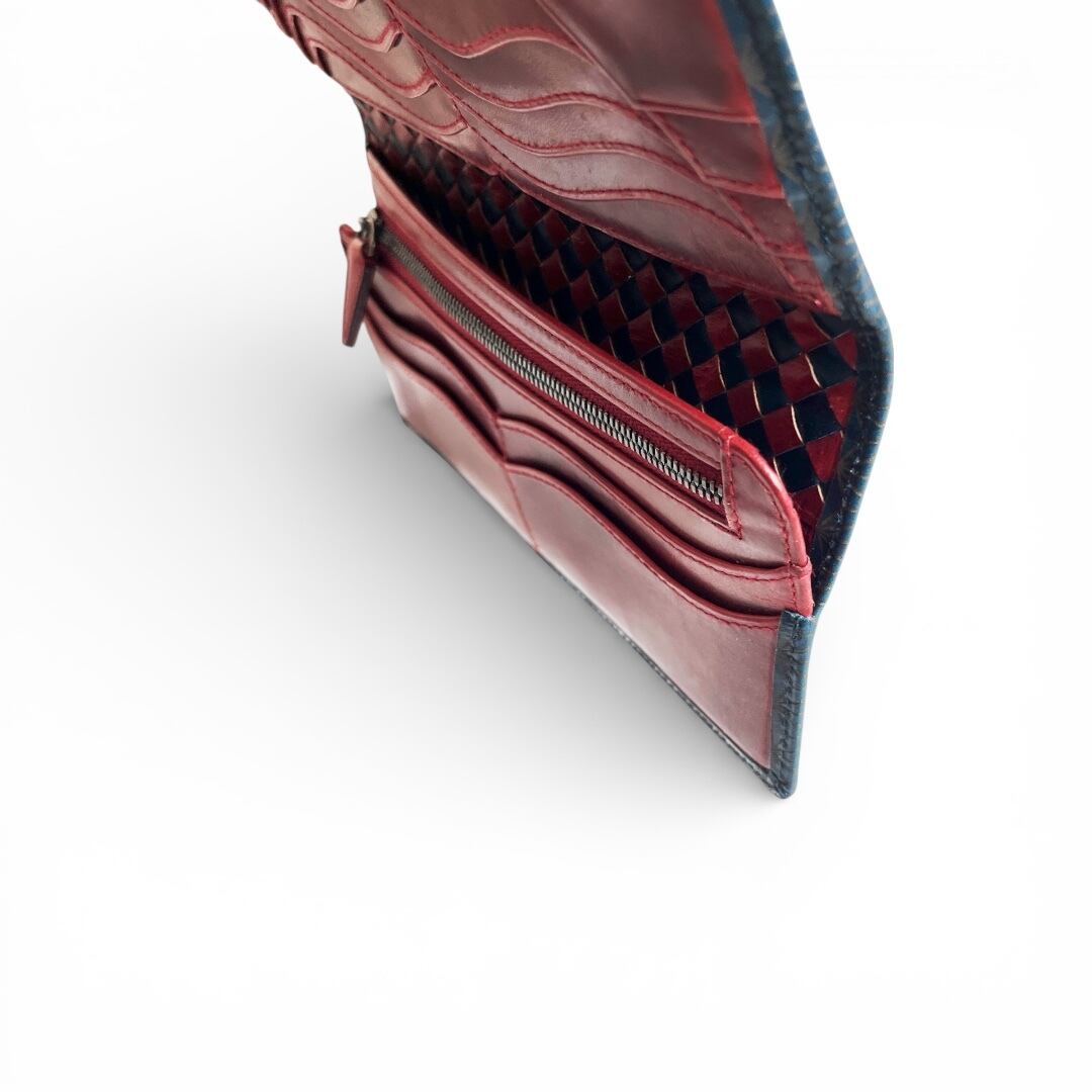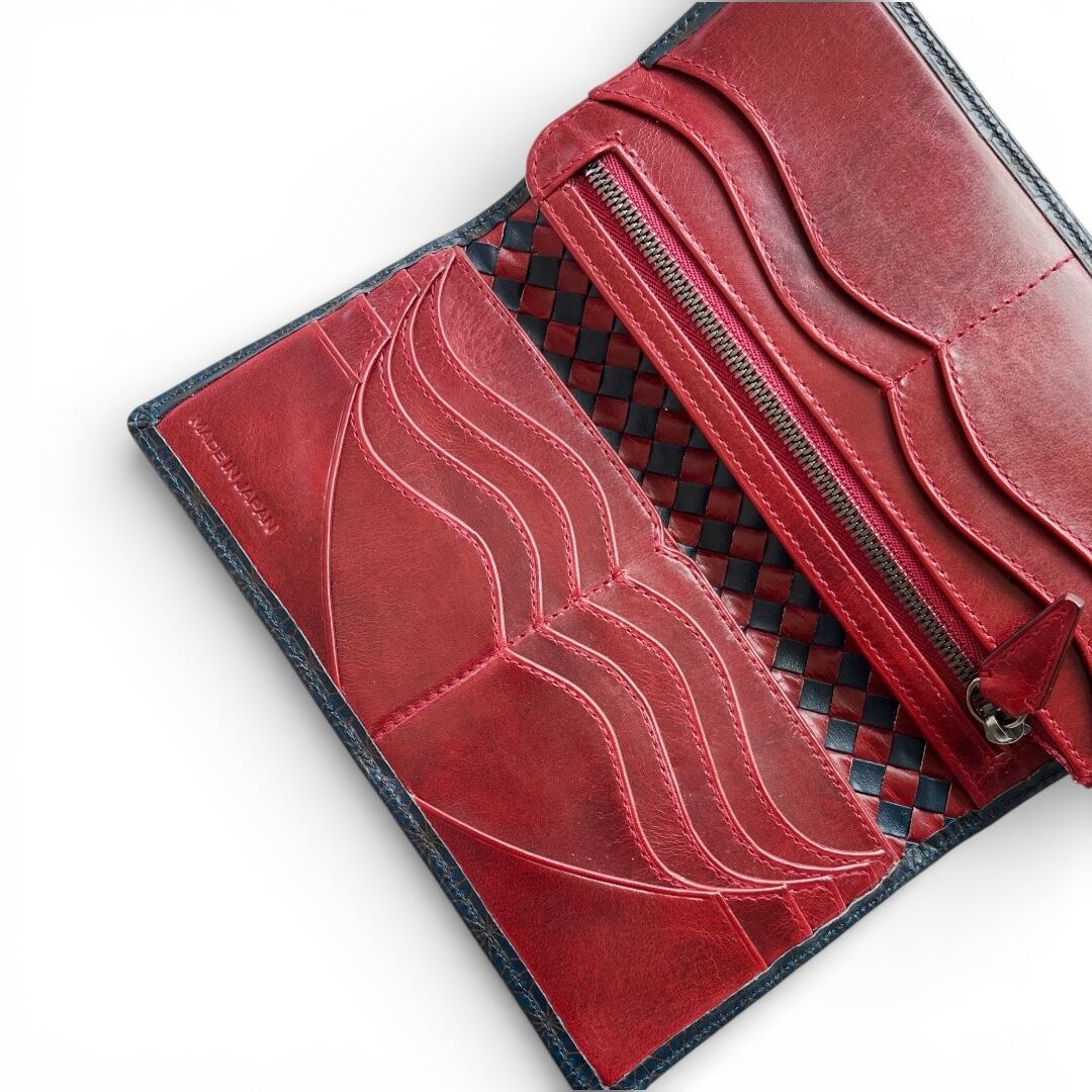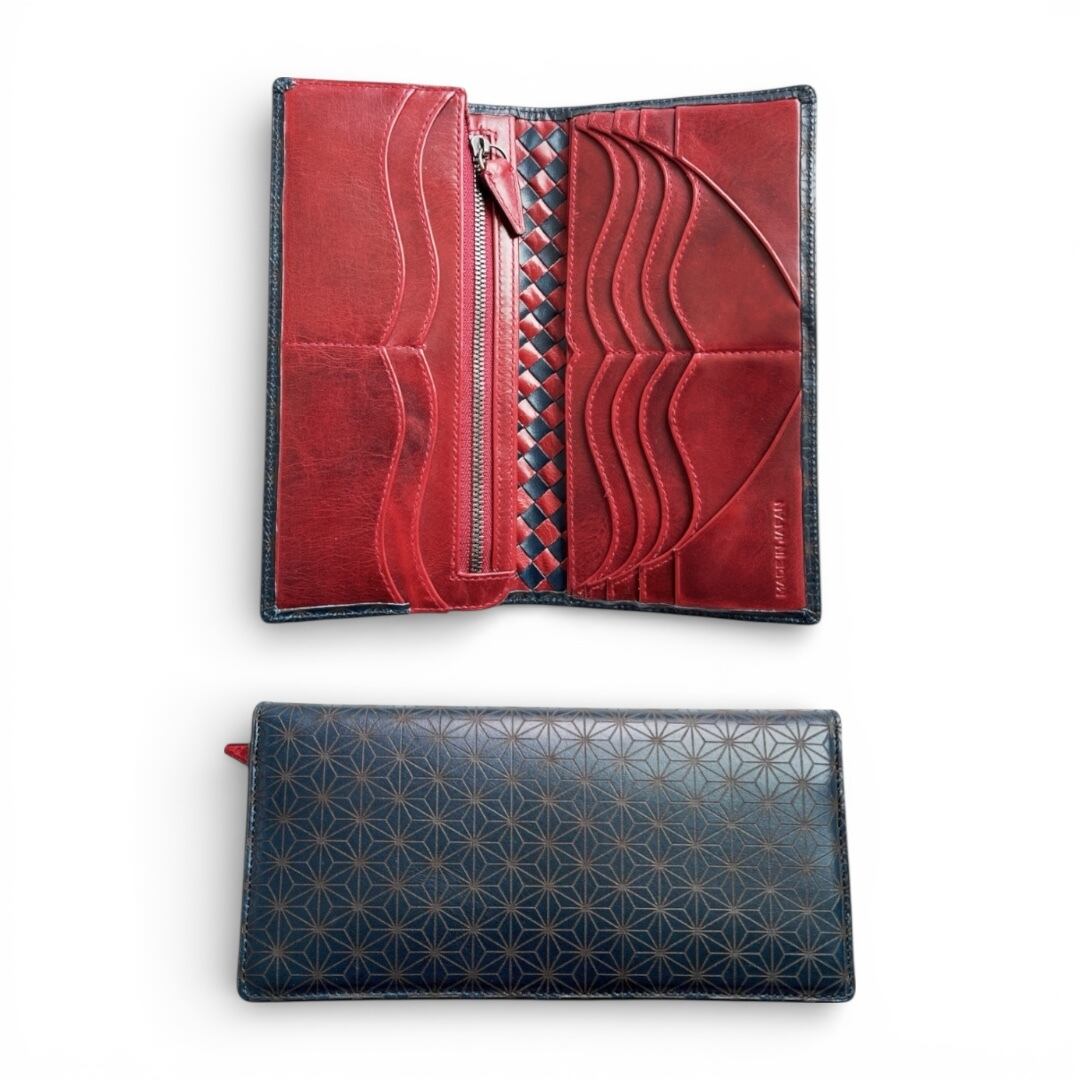 イタリア産ブッテーロ麻の葉紋様 Navy × 日本産仔牛革Red